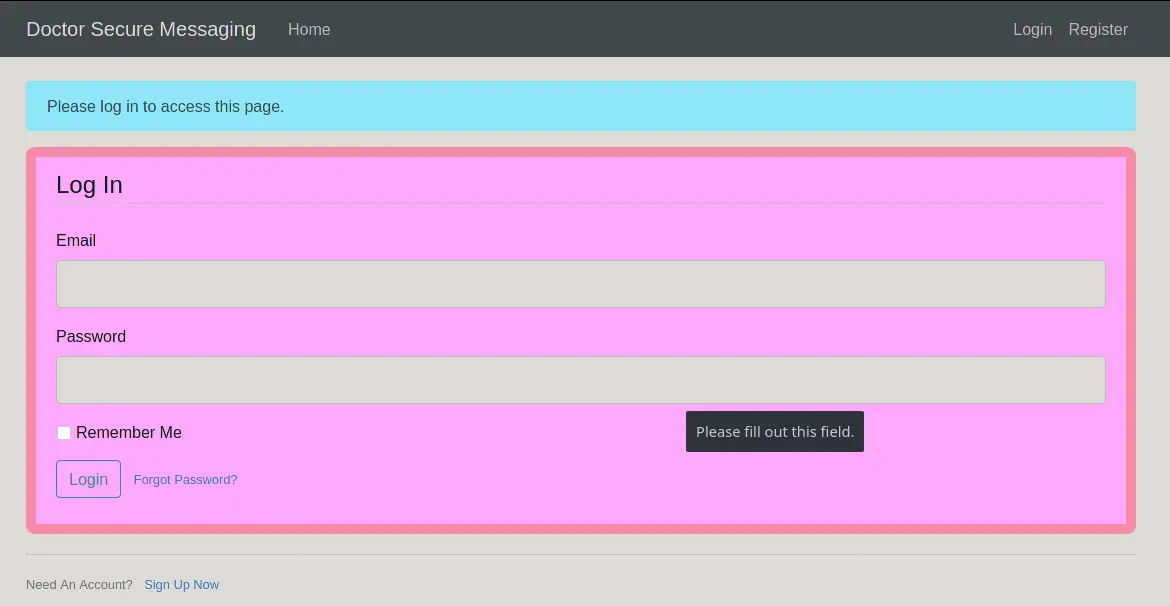 对该页面进行一番探测, 并没有什么收获; 倒是页面中间的邮箱地址 info@doctors.htb 才是关键, htb 一贯的套路, 将 doctors.htb 添加到 /etc/hosts, 再次访问网页便能访问到与之前不同的页面。