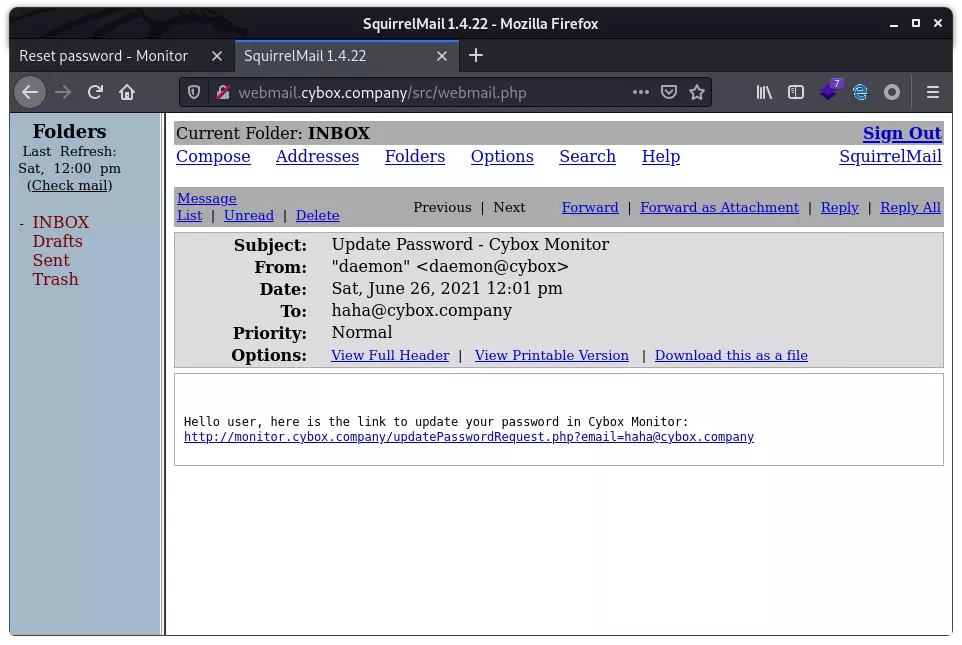 先尝试所有能注册用户的页面,register 页面注册用户之后,即可登录 Squirrel mail。monitor 页面注册之后,似乎什么也干不了: